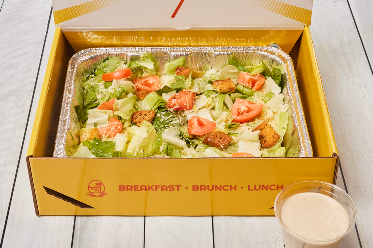 Romaine lettuce, tomato, parmesan cheese and croutons. Served with Caesar dressing. 250 cal